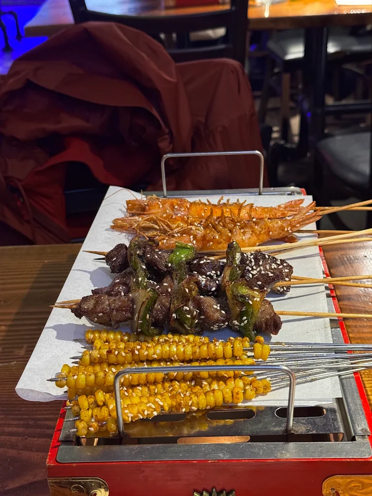 Gao Chinese BBQ specializes in northern Chinese street-style barbecue. Skewers are grilled over open flames and seasoned with cumin, chili powder, and Sichuan spices.